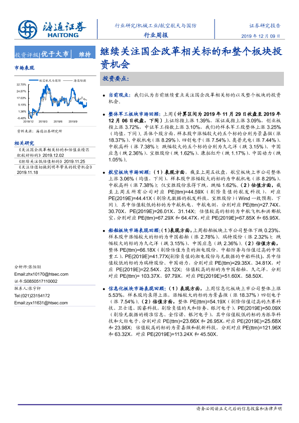 【海通证券】【20191209】20191209-海通证券-航空航天与国防行业周报:继续关注国企改革相关标的和整个板块投资机会-4页