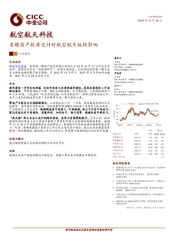【中金公司】【20191218】20191218-中金公司-航空航天科技行业动态:首艘国产航母交付对航空航天板块影响-5页