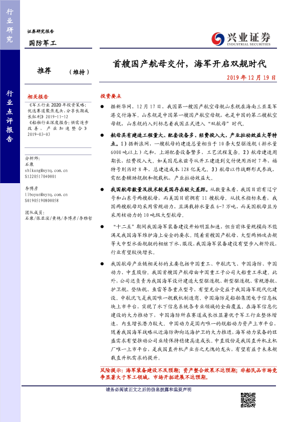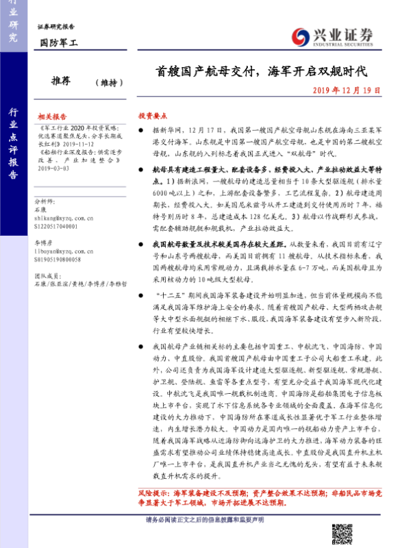 【兴业证券】【20191219】首艘国产航母交付,海军开启双舰时代-6页