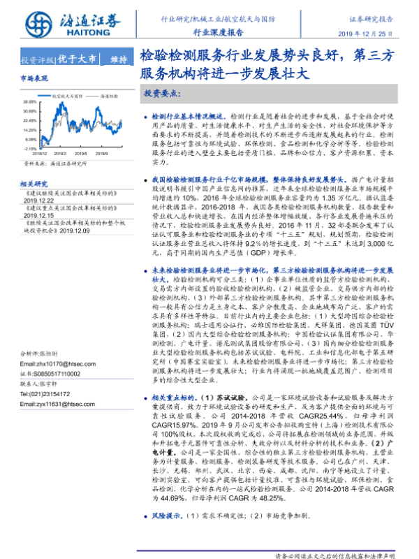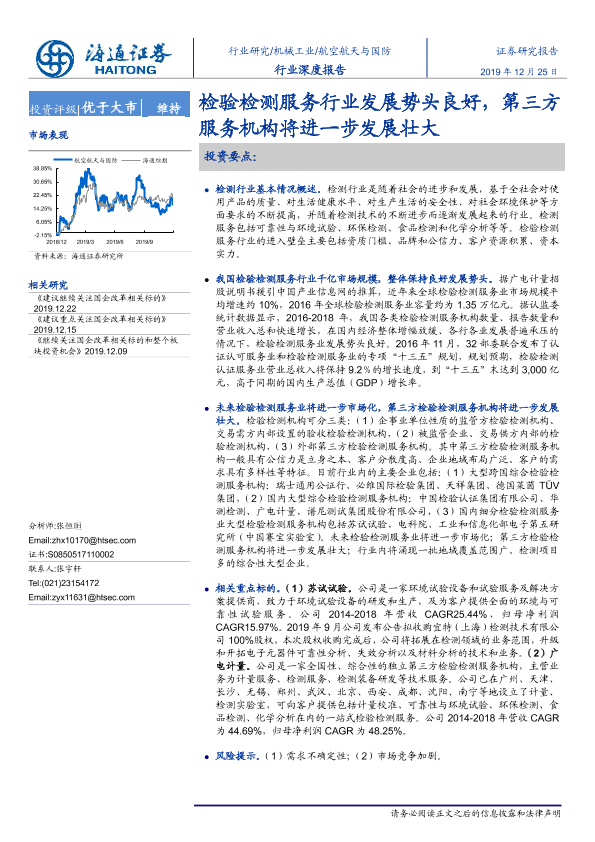 【海通证券】【20191225】20191225-海通证券-航空航天与国防行业深度报告:检验检测服务行业发展势头良好,第三方服务机构将进一步发展壮大-20页