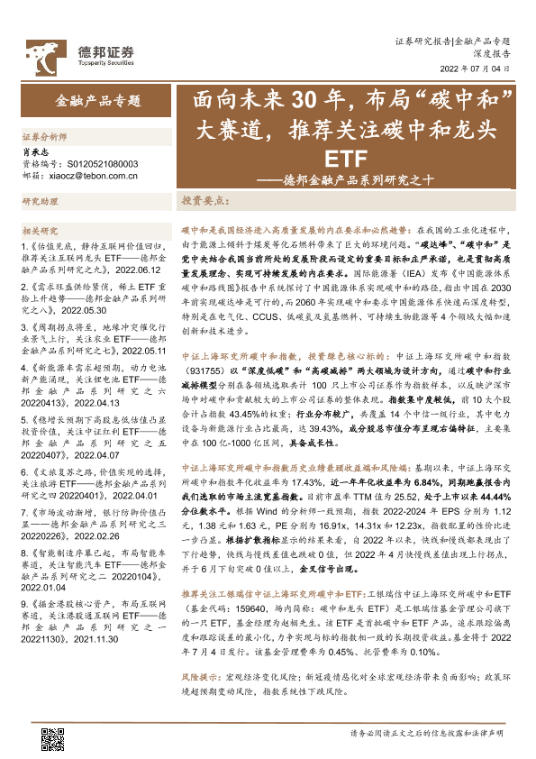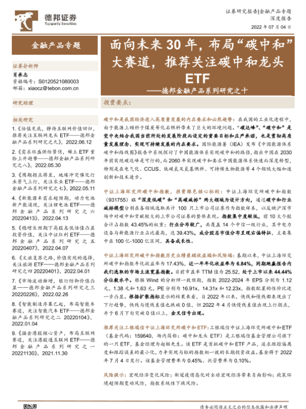 【德邦证券】【20220704】金融产品系列研究之十:面向未来30年,布局“碳中和”大赛道,推荐关注碳中和龙头ETF-22页