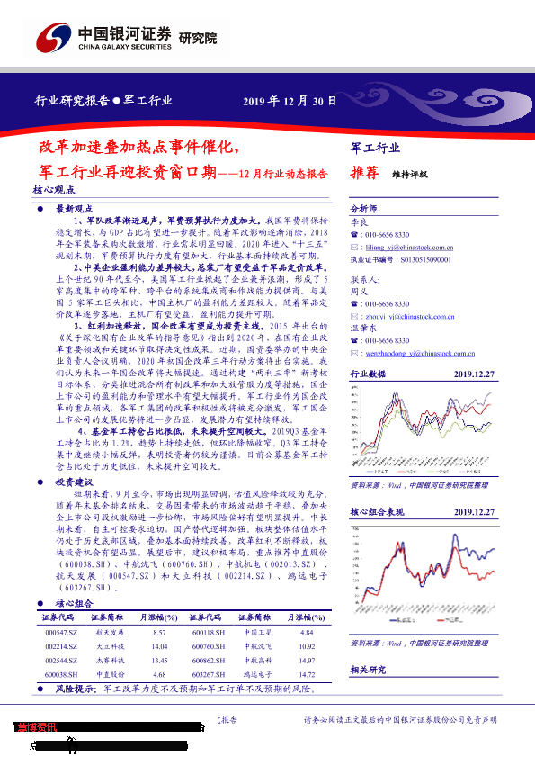 【银河证券】【20191230】20191230-中国银河-军工行业12月行业动态报告:改革加速叠加热点事件催化,军工行业再迎投资窗口期-38页