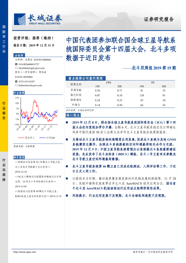 【长城证券】【20191231】2019第19期北斗双周报:中国代表团参加联合国全球卫星导航系统国际委员会第十四届大会,北斗多项数据于近日发布-11页