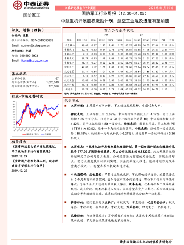 【中泰证券】【20200105】国防军工行业周报:中航重机开展股权激励计划,航空工业混改进度有望加速-12页