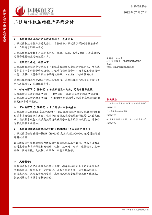 【国联证券】【20220707】金融工程专题:工银瑞信权益指数产品线分析-19页