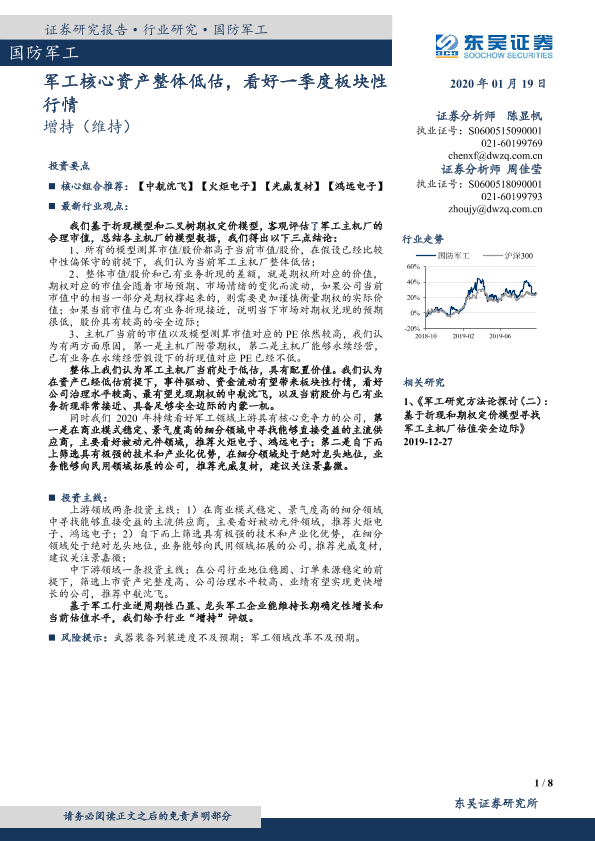 【东吴证券】【20200119】国防军工:军工核心资产整体低估,看好一季度板块性行情-8页