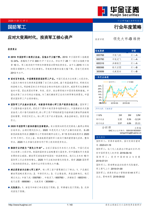 【华金证券】【20200117】20200117-华金证券-国防军工行业年度策略:应对大变局时代,投资军工核心资产-40页