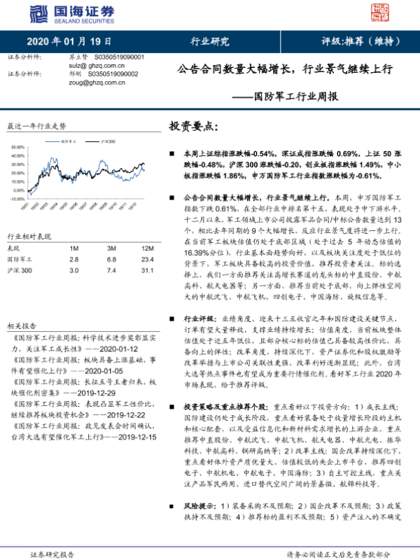 【国海证券】【20200119】国防军工行业周报:公告合同数量大幅增长,行业景气继续上行-14页