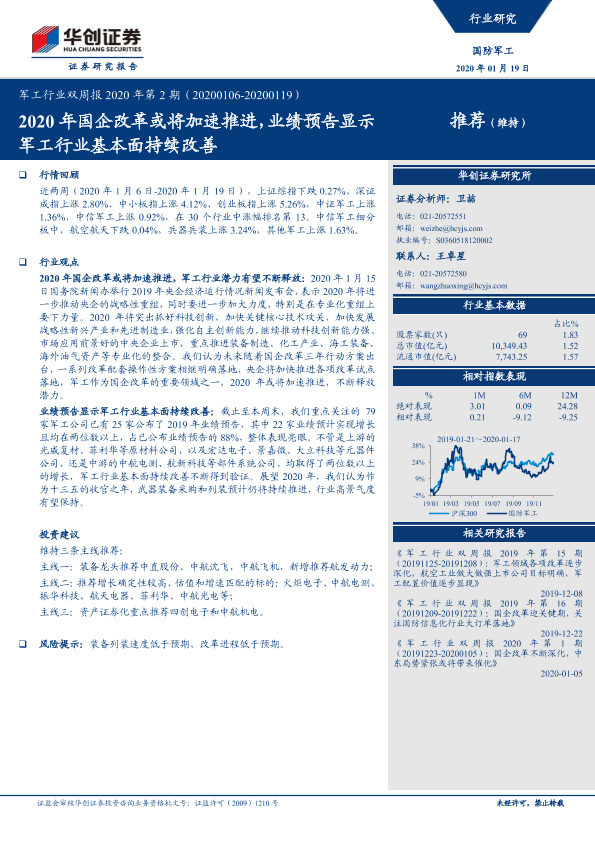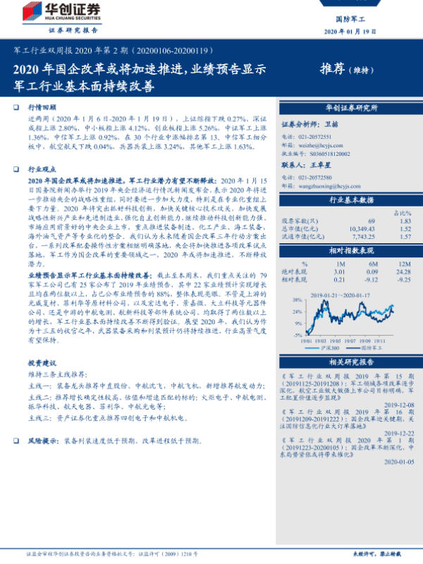【华创证券】【20200119】军工行业双周报2020年第2期:2020年国企改革或将加速推进,业绩预告显示军工行业基本面持续改善-26页