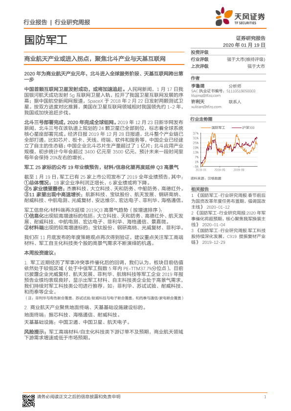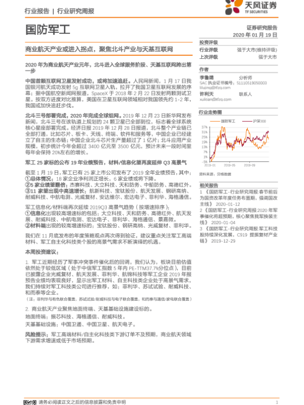 【天风证券】【20200119】国防军工行业研究周报:商业航天产业或进入拐点,聚焦北斗产业与天基互联网-3页