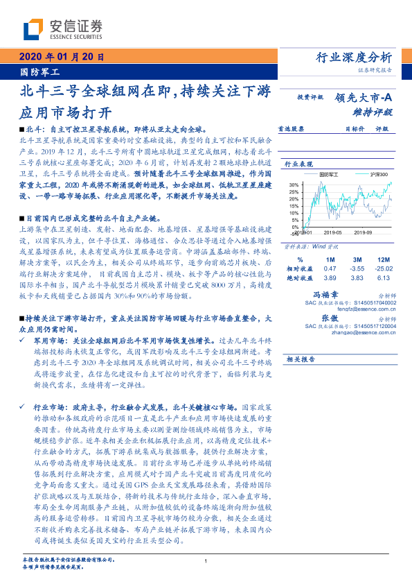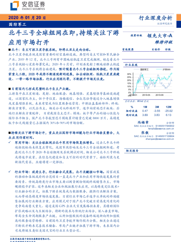 【安信证券】【20200120】国防军工行业深度分析:北斗三号全球组网在即,持续关注下游应用市场打开-30页