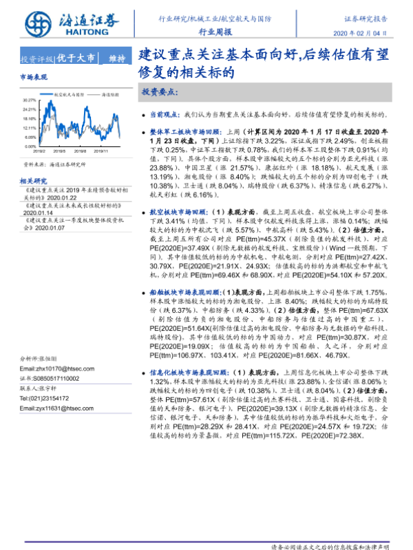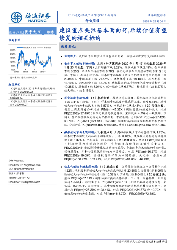 【海通证券】【20200204】20200204-海通证券-航空航天与国防行业周报:建议重点关注基本面向好,后续估值有望修复的相关标的-4页
