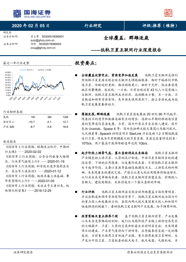 【国海证券】【20200205】低轨卫星互联网行业深度报告:全球覆盖,群雄逐鹿-15页