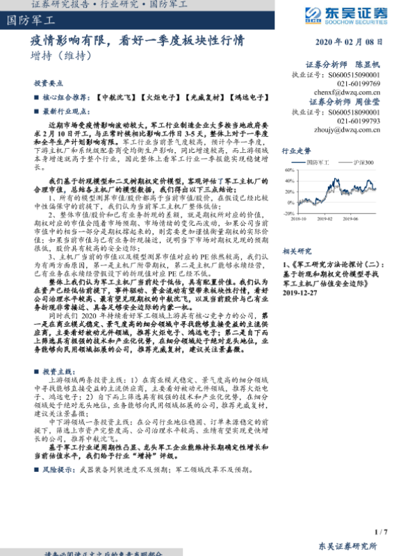 【东吴证券】【20200208】国防军工行业点评报告:疫情影响有限,看好一季度板块性行情-7页