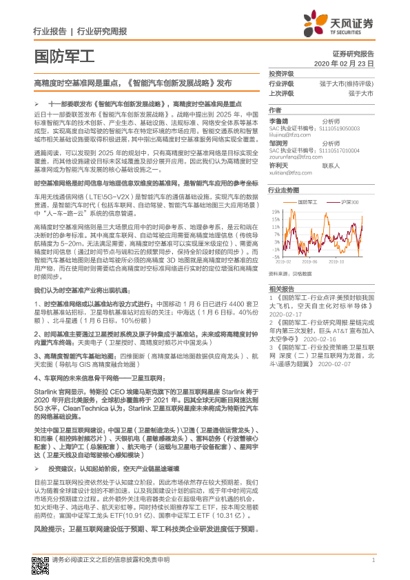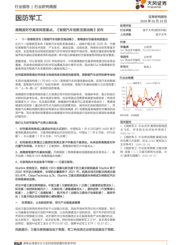 【天风证券】【20200223】国防军工行业研究周报:高精度时空基准网是重点,《智能汽车创新发展战略》发布-2页