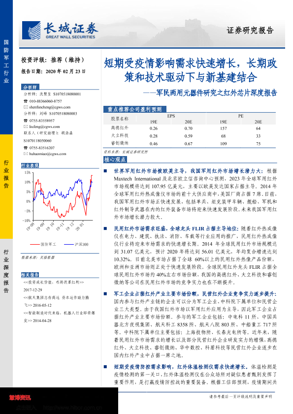 军民两用元器件 国防军工 新基建 疫情影响 红外芯片