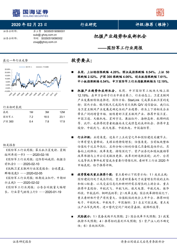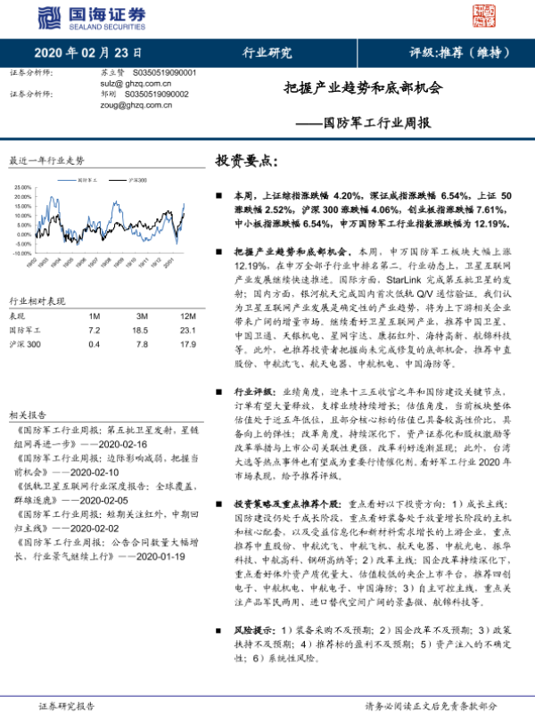 【国海证券】【20200223】20200223-国海证券-国防军工行业周报:把握产业趋势和底部机会-13页