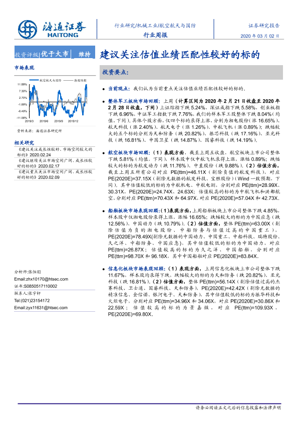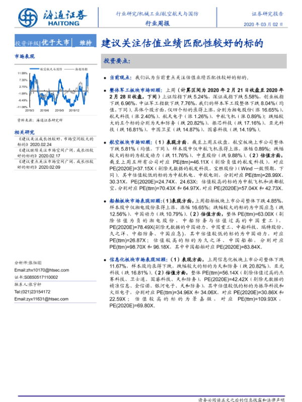 【海通证券】【20200302】20200302-海通证券-航空航天与国防行业周报:建议关注估值业绩匹配性较好的标的-4页