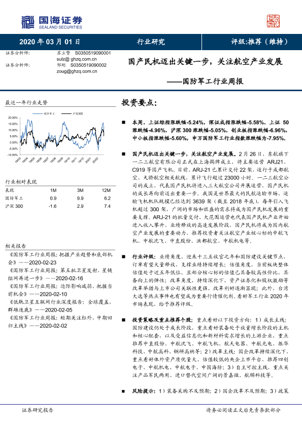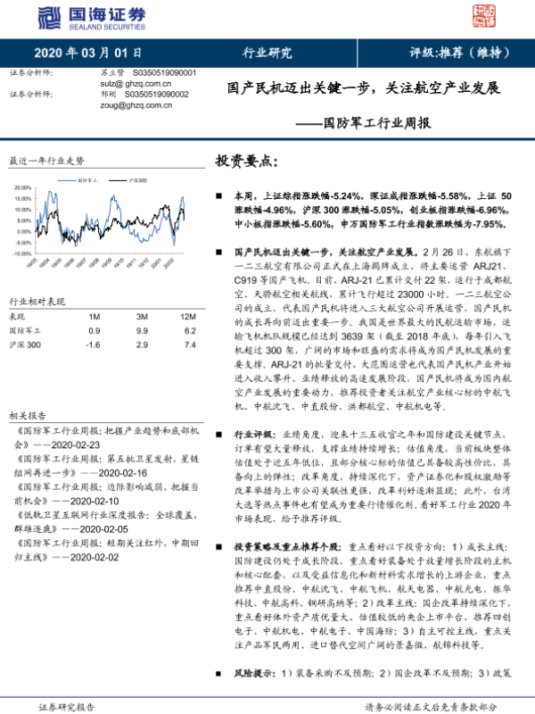 【国海证券】【20200301】20200301-国海证券-国防军工行业周报:国产民机迈出关键一步,关注航空产业发展-13页