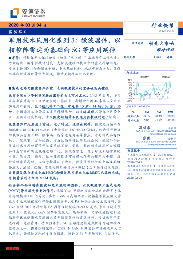【安信证券】【20200304】国防军工:军用技术民用化系列3:微波器件,以相控阵雷达为基础向5G等应用延伸-5页