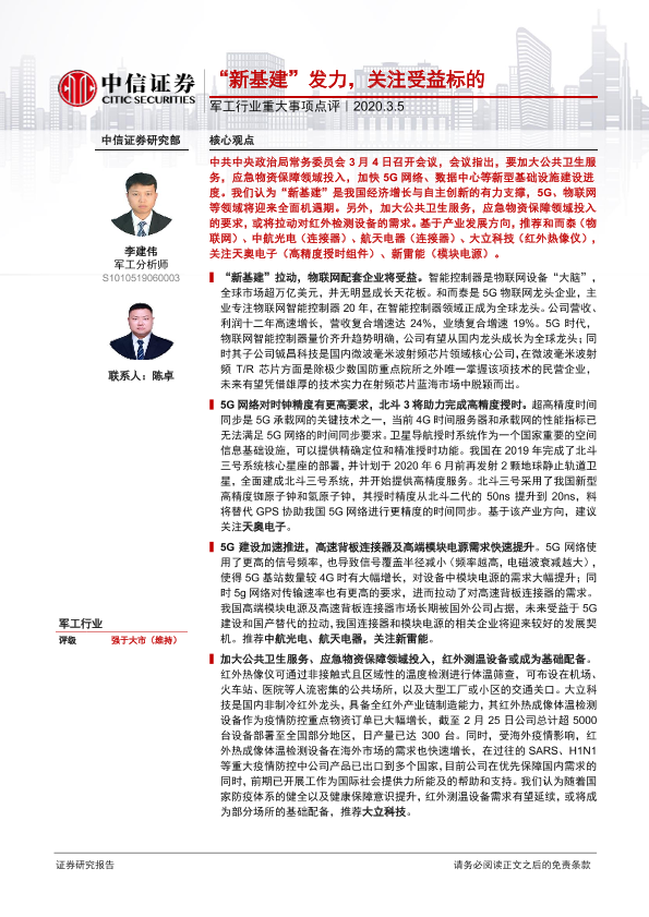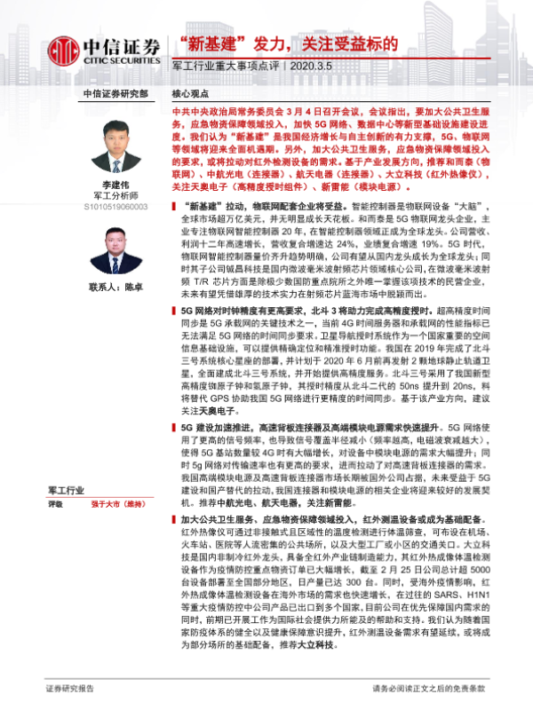 【中信证券】【20200305】军工行业重大事项点评:“新基建”发力,关注受益标的-3页