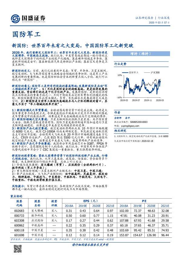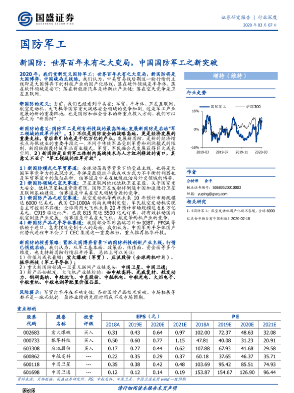 【国盛证券】【20200307】新国防:世界百年未有之大变局,中国国防军工之新突破-27页