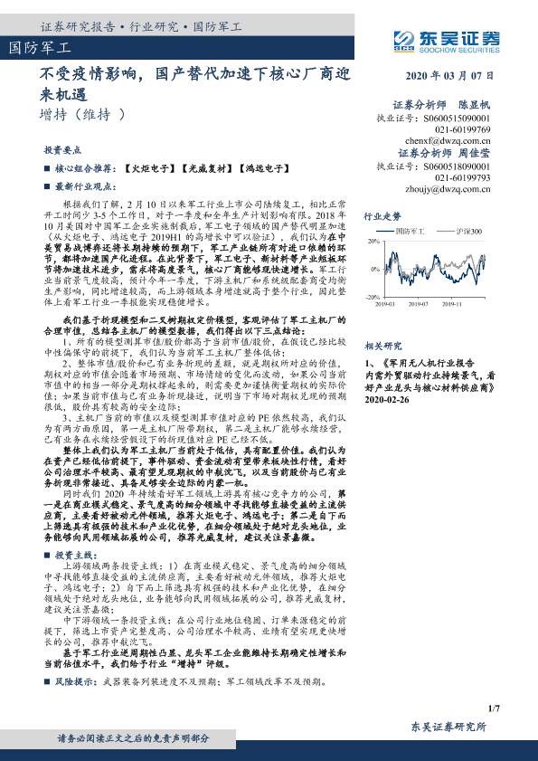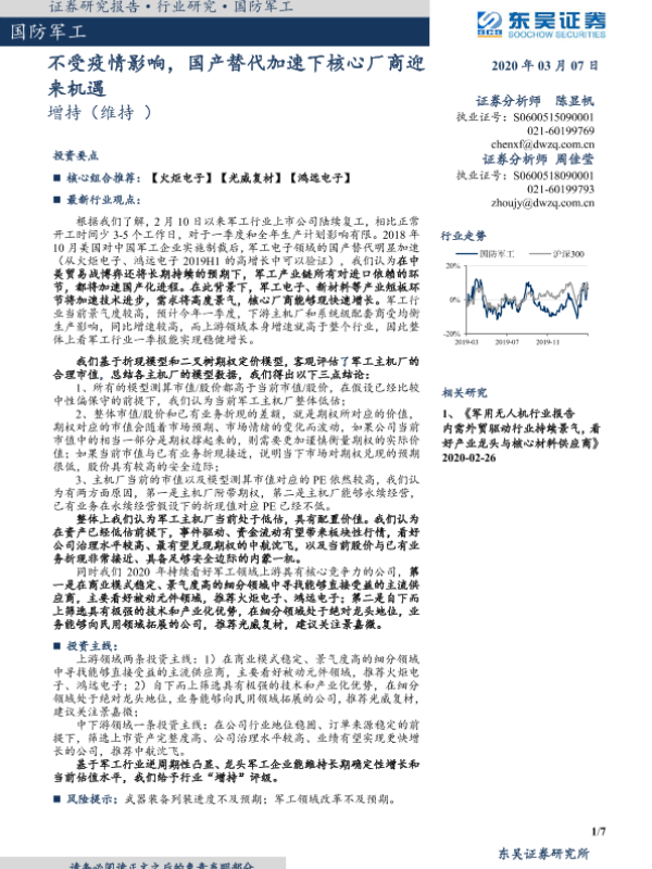 【东吴证券】【20200307】国防军工:不受疫情影响,国产替代加速下核心厂商迎来机遇-7页