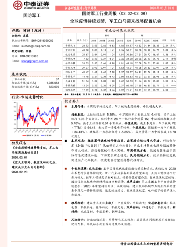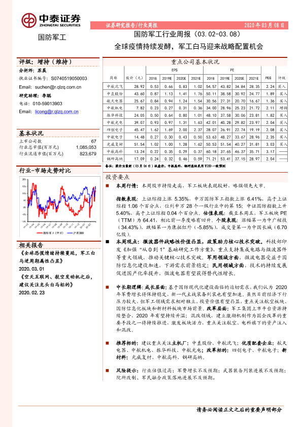 【中泰证券】【20200308】20200308-中泰证券-国防军工行业周报:全球疫情持续发酵,军工白马迎来战略配置机会-14页