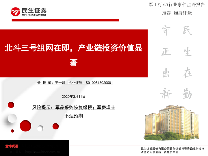 【民生证券】【20200311】军工行业:北斗三号组网在即,产业链投资价值显著-6页