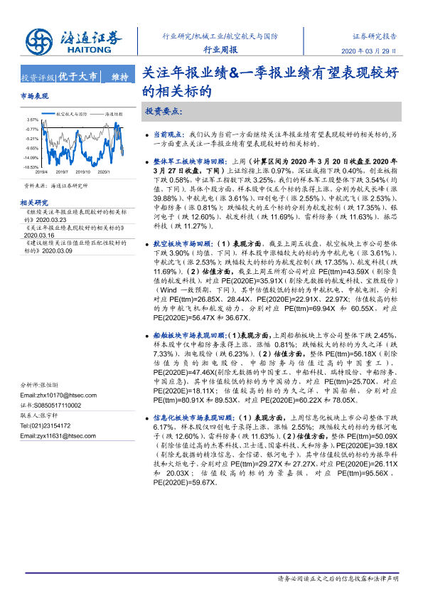 【海通证券】【20200329】20200329-海通证券-航空航天与国防行业周报:关注年报业绩&一季报业绩有望表现较好的相关标的-4页