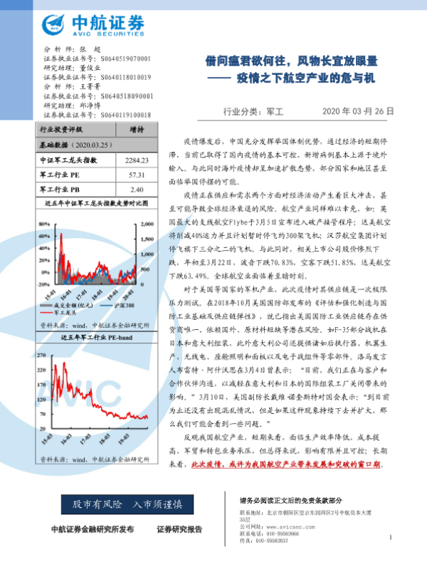 军工行业 疫情冲击 经济影响 航空产业 证券研究