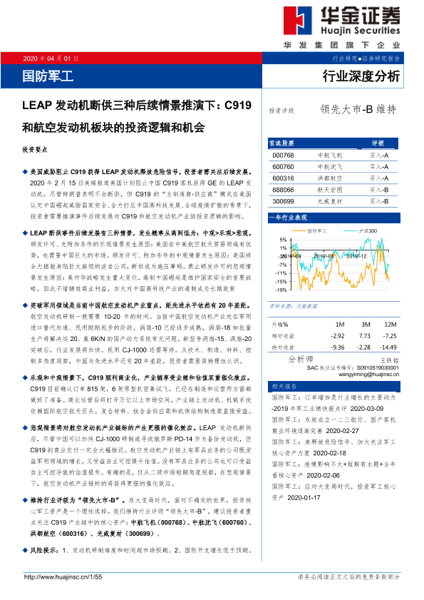【华金证券】【20200401】国防军工行业深度分析:LEAP发动机断供三种后续情景推演下:C919和航空发动机板块的投资逻辑和机会-55页