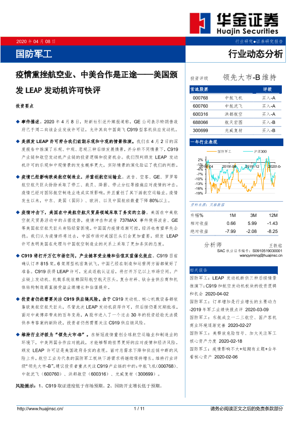 【华金证券】【20200408】20200408-华金证券-国防军工行业动态分析:美国颁发LEAP发动机许可快评-疫情重挫航空业、中美合作是正途-11页