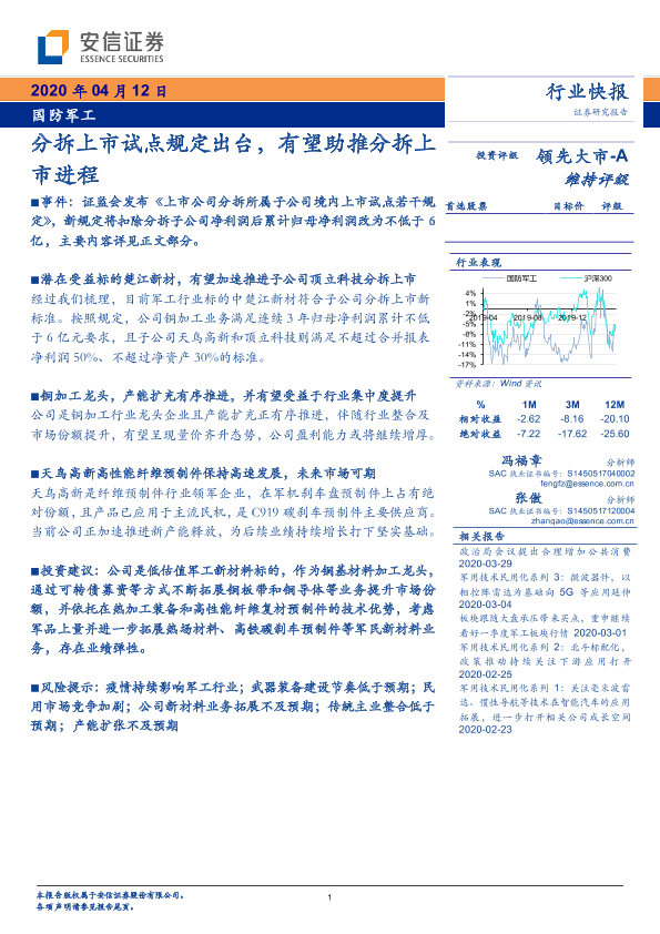【安信证券】【20200412】国防军工:分拆上市试点规定出台,有望助推分拆上市进程-5页