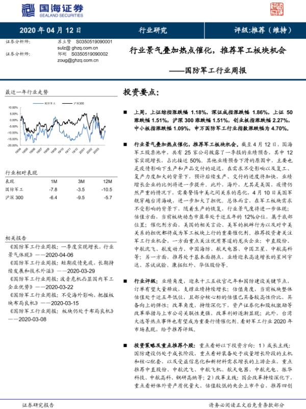 【国海证券】【20200412】国防军工行业周报:行业景气叠加热点催化,推荐军工板块机会-13页