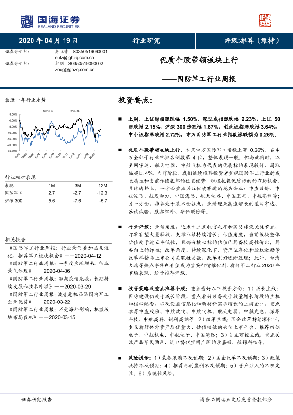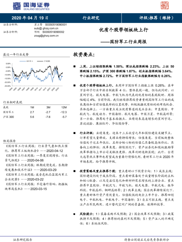 【国海证券】【20200419】国防军工行业周报:优质个股带领板块上行-13页