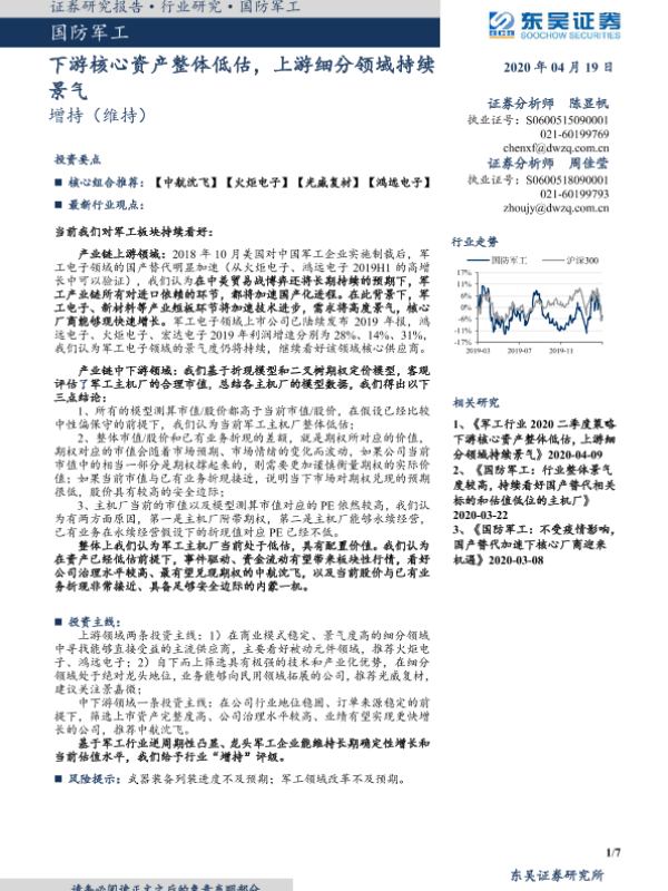 【东吴证券】【20200419】国防军工:下游核心资产整体低估,上游细分领域持续景气-7页