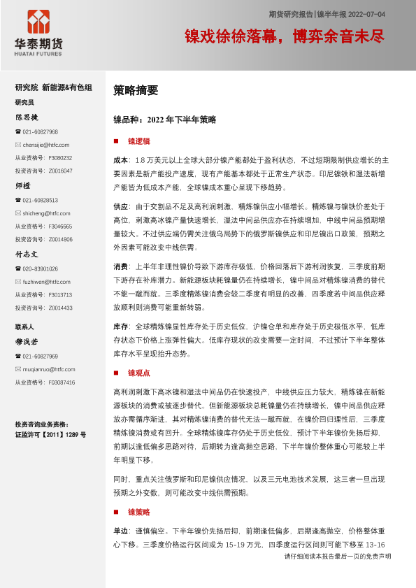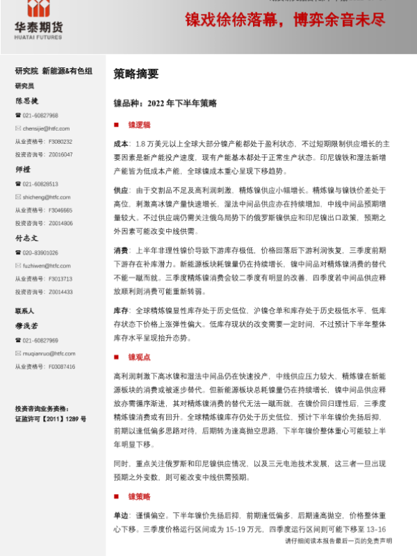【华泰期货】【20220704】镍半年报:镍戏徐徐落幕,博弈余音未尽-30页