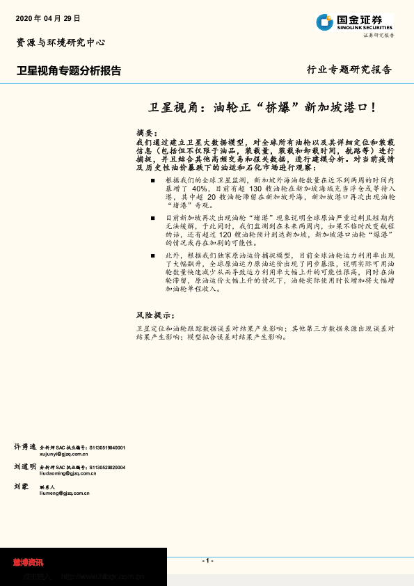 【国金证券】【20200429】卫星视角:油轮正“挤爆”新加坡港口!-8页