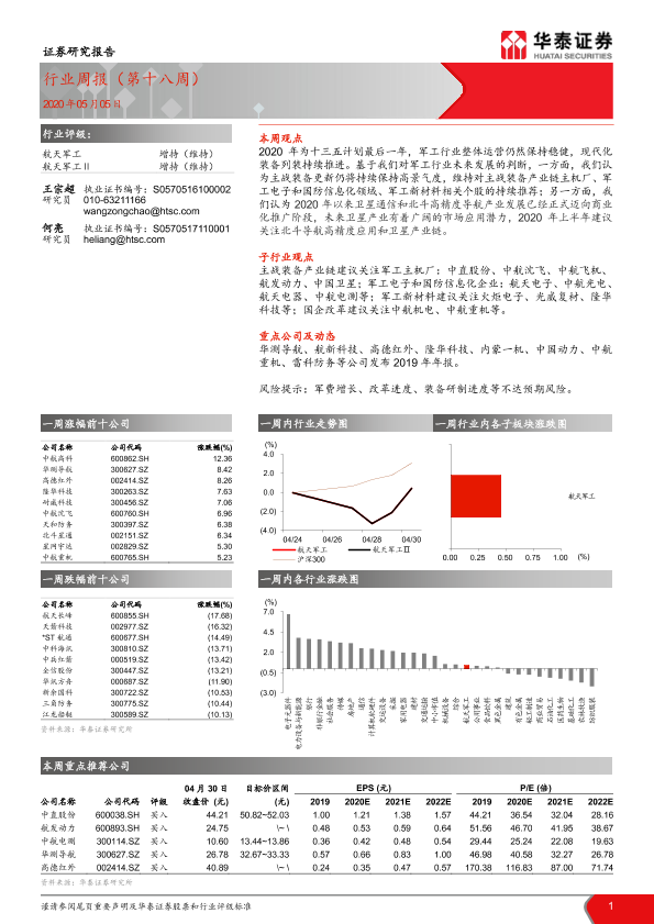 【华泰证券】【20200505】20200505-华泰证券-航天军工行业周报(第十八周)-18页