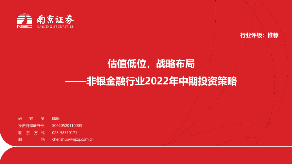 【南京证券】【20220705】非银金融行业2022年中期投资策略:估值低位,战略布局-31页