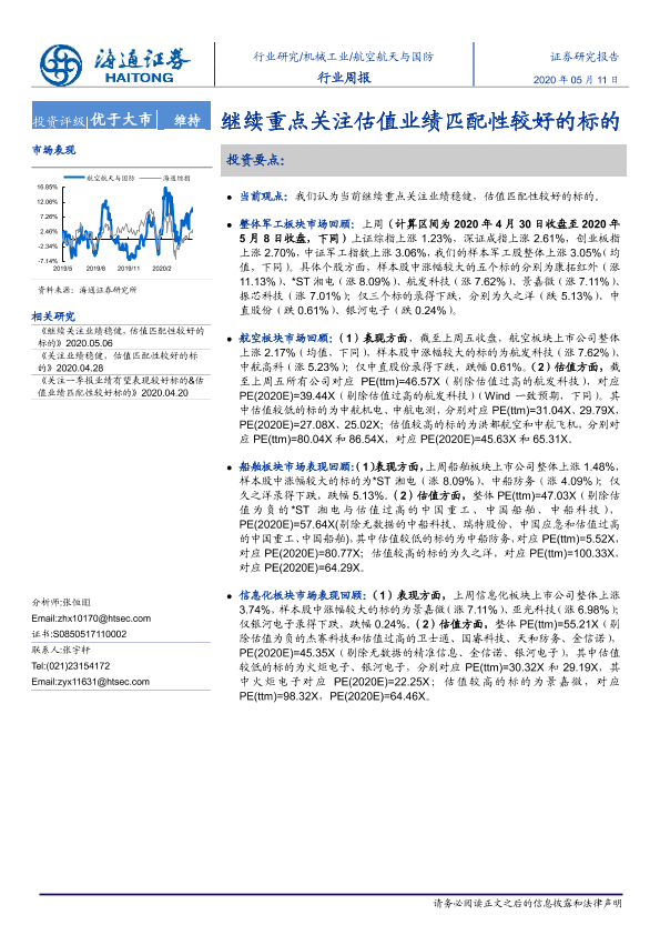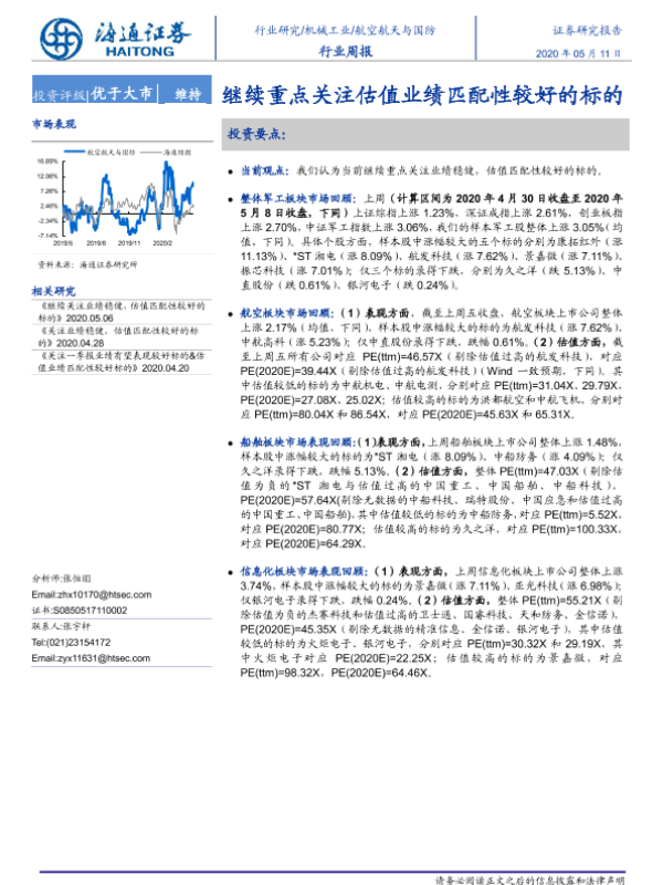 【海通证券】【20200511】20200511-海通证券-航空航天与国防行业周报:继续重点关注估值业绩匹配性较好的标的-4页