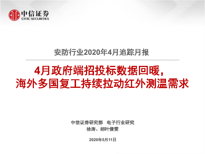 【中信证券】【20200511】安防行业2020年4月追踪月报:4月政府端招投标数据回暖,海外多国复工持续拉动红外测温需求-20页