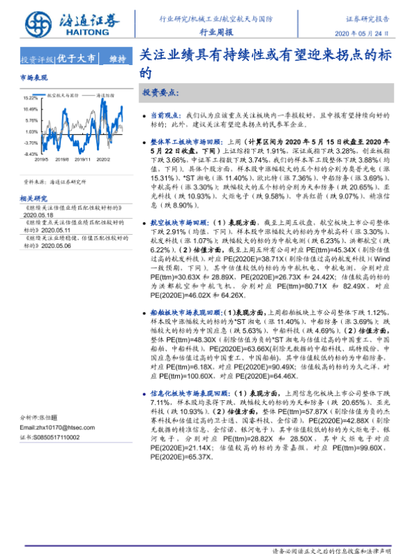 【海通证券】【20200524】20200524-海通证券-航空航天与国防行业周报:关注业绩具有持续性或有望迎来拐点的标的-4页