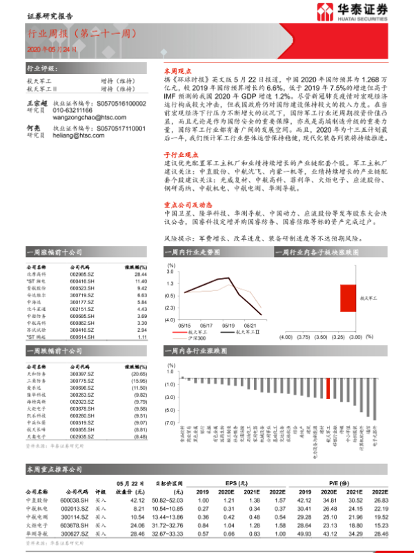 【华泰证券】【20200524】20200524-华泰证券-航天军工行业周报(第二十一周)-16页