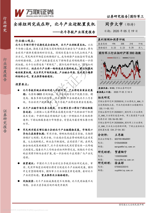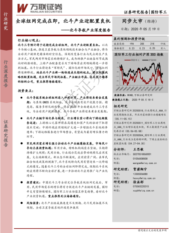 【万联证券】【20200519】国防军工:北斗导航产业深度报告-全球组网完成在即,北斗产业迎配置良机-42页