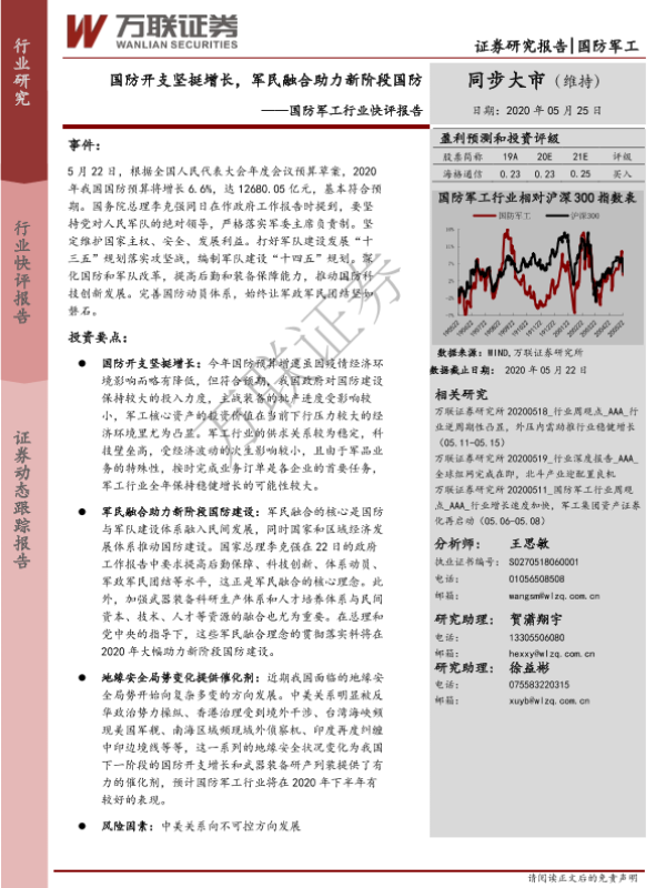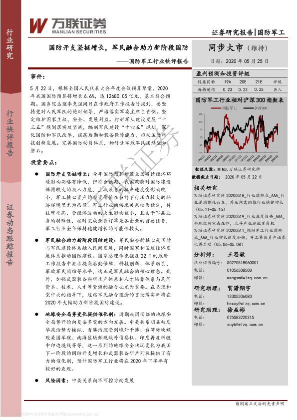 【万联证券】【20200525】国防军工行业快评报告:国防开支坚挺增长,军民融合助力新阶段国防-3页