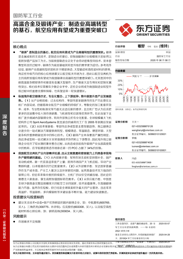 【东方证券】【20200608】国防军工行业深度报告 —— 高温合金及锻铸产业:制造业高端转型的基石,航空应用有望成为重要突破口-36页