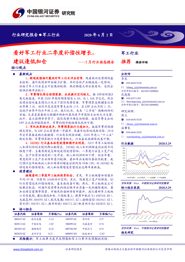 【银河证券】【20200602】军工行业5月行业动态报告:看好军工行业二季度补偿性增长,建议逢低加仓-37页