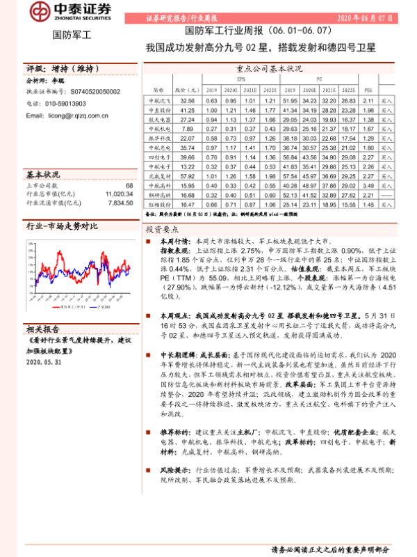 【中泰证券】【20200607】20200607-中泰证券-国防军工行业周报:我国成功发射高分九号02星,搭载发射和德四号卫星-13页